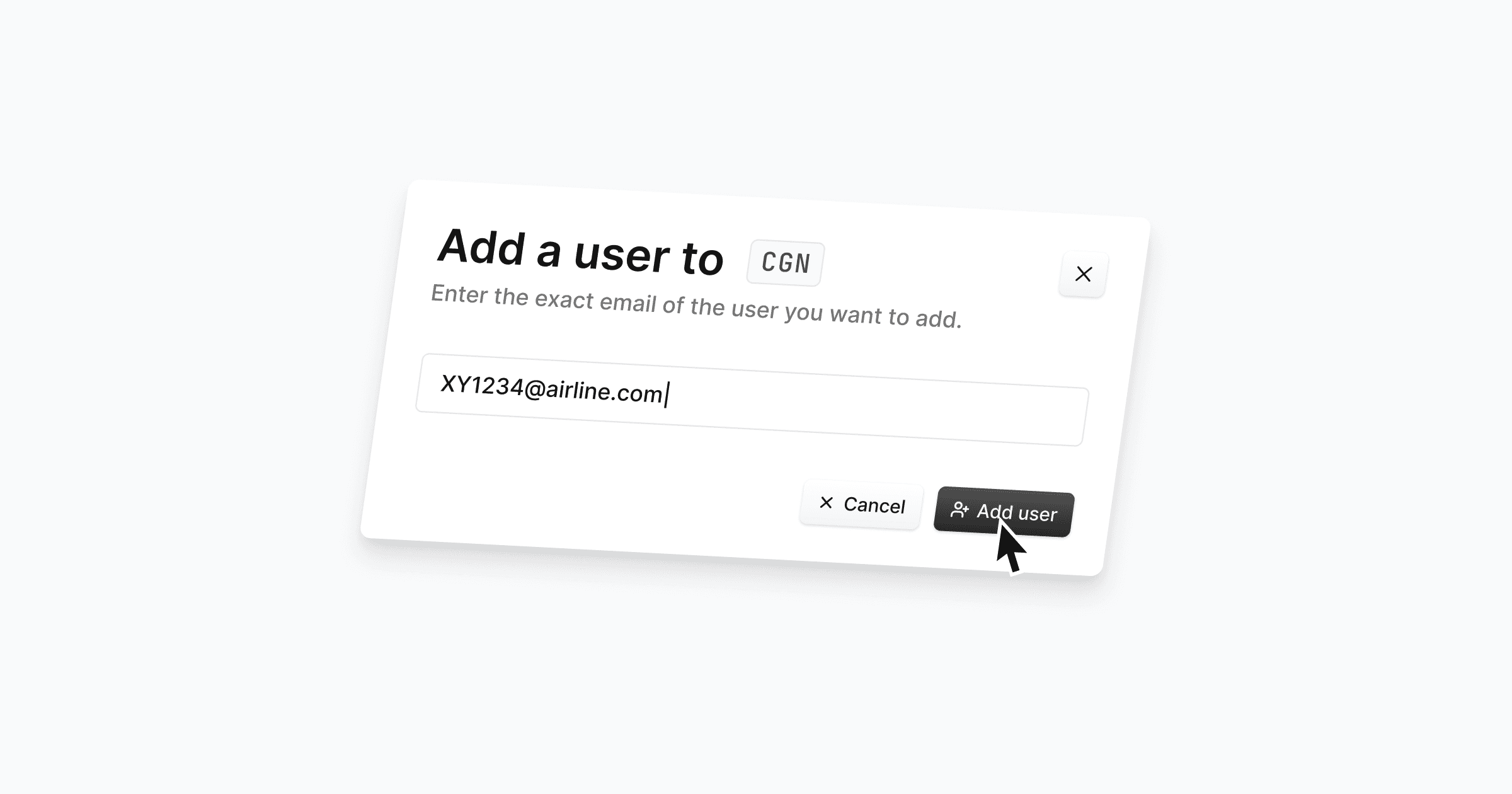 Add team members to specific stations (e.g. CGN, FRA) by entering their email — they’ll only see the data and tools relevant to their assigned airport.
